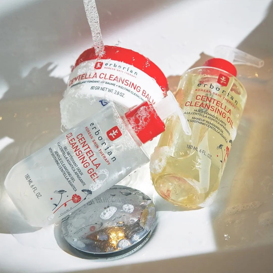 To follow the Korean double cleansing ritual, I recommend applying the Erborian Centella Cleansing Gel afterward. Since it is a water-based cleanser it effectively removes traces of perspiration as well as other water-based impurities.